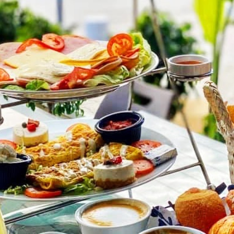 Geniessen Sie eine köstliche Auswahl an frisch zubereiteten Speisen, von fluffigen Pfannkuchen über knusprige Croissants bis hin zu frischem Obst und herzhaften Leckereien.